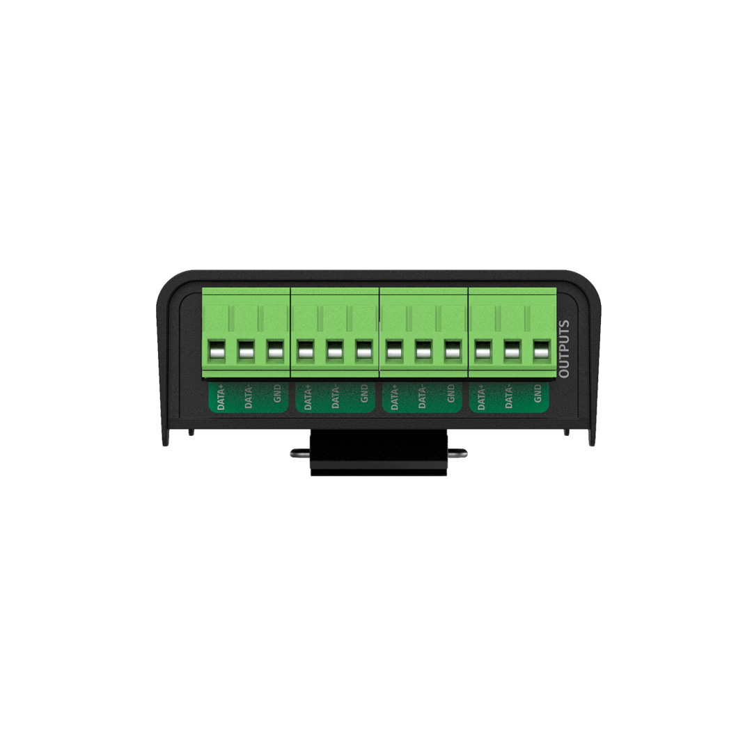 DIN RDS4 is the new installation grade 4-port DMX/RDM splitter in a compact, 4-module DIN-rail form factor.